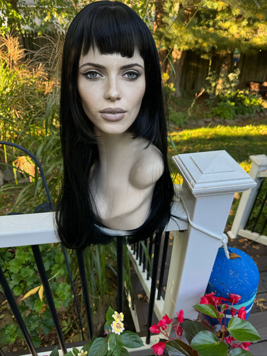 ABRACADABRA Bi Level Cut Full Bang Wig Jet Black Baby Bangs Wig HD Synthetic Wig Drag Wig Burlesque Lady Gaga Hime Cut The Wig Witch