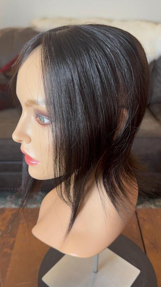 Grysette Rich Black Low Density Topper 100% Human Hair Topper Wig Natural Black Lace Top 10” The Wig Witch
