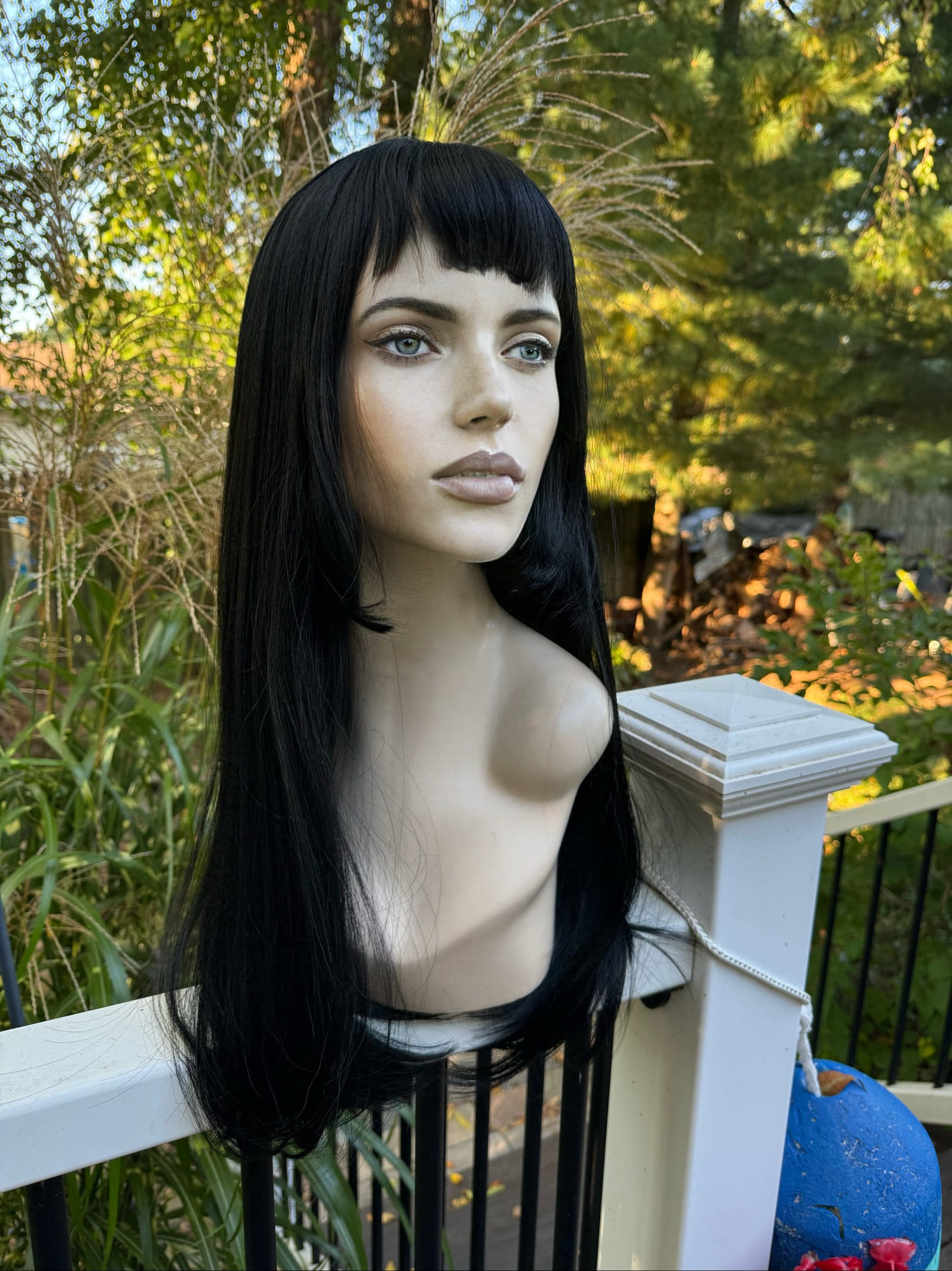 This wig photographs beautifully, her long layers and editorial bi level, disconnected layers and baby bang are custom cut for natural movement.