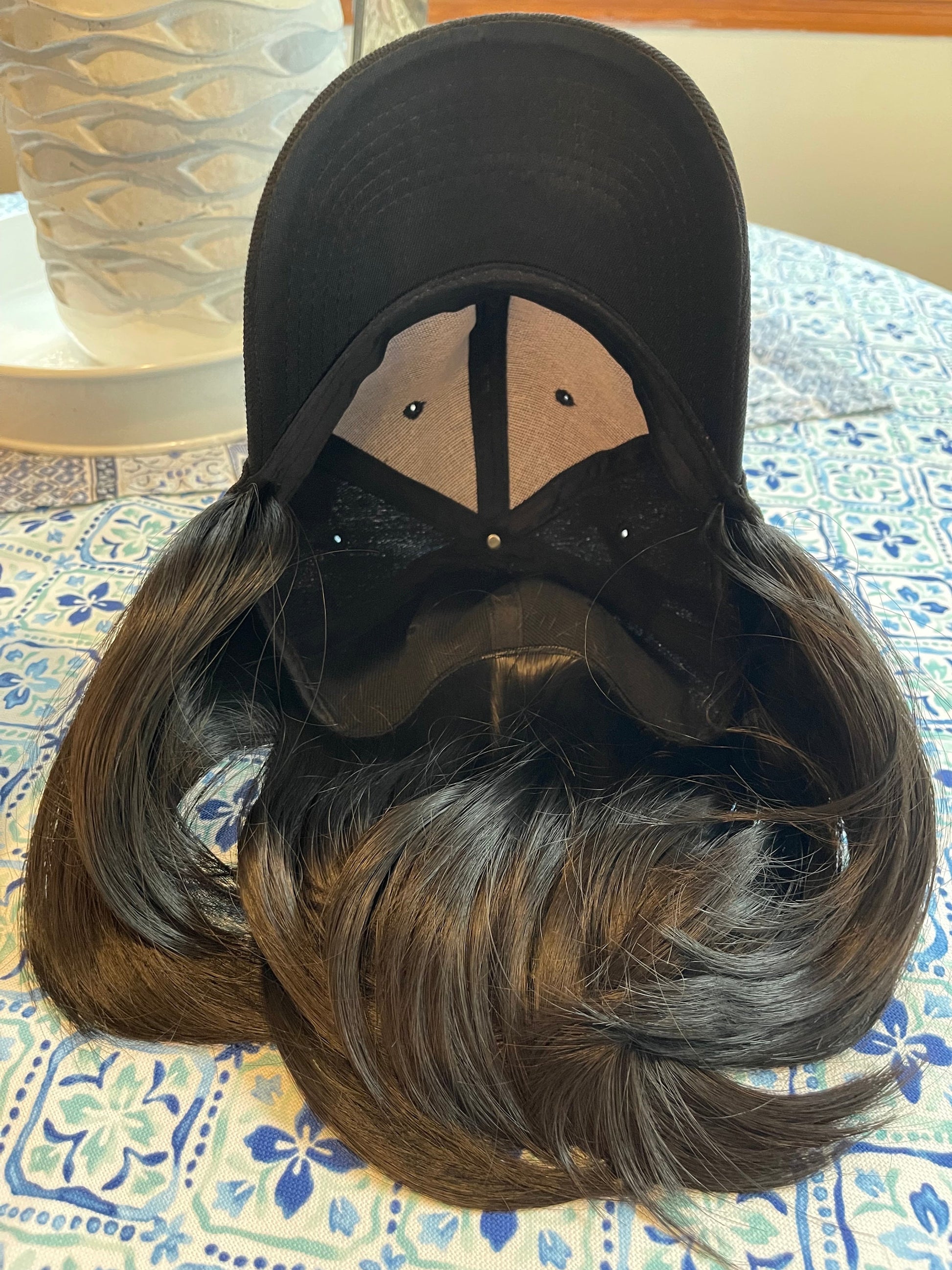 Hat Wig 8” Black Bob Ballcap Hair Wig Fall HD Wig Sleek Straight Wig Light Wig Chemo Alopecia Trichotillomania Radiation Therapy