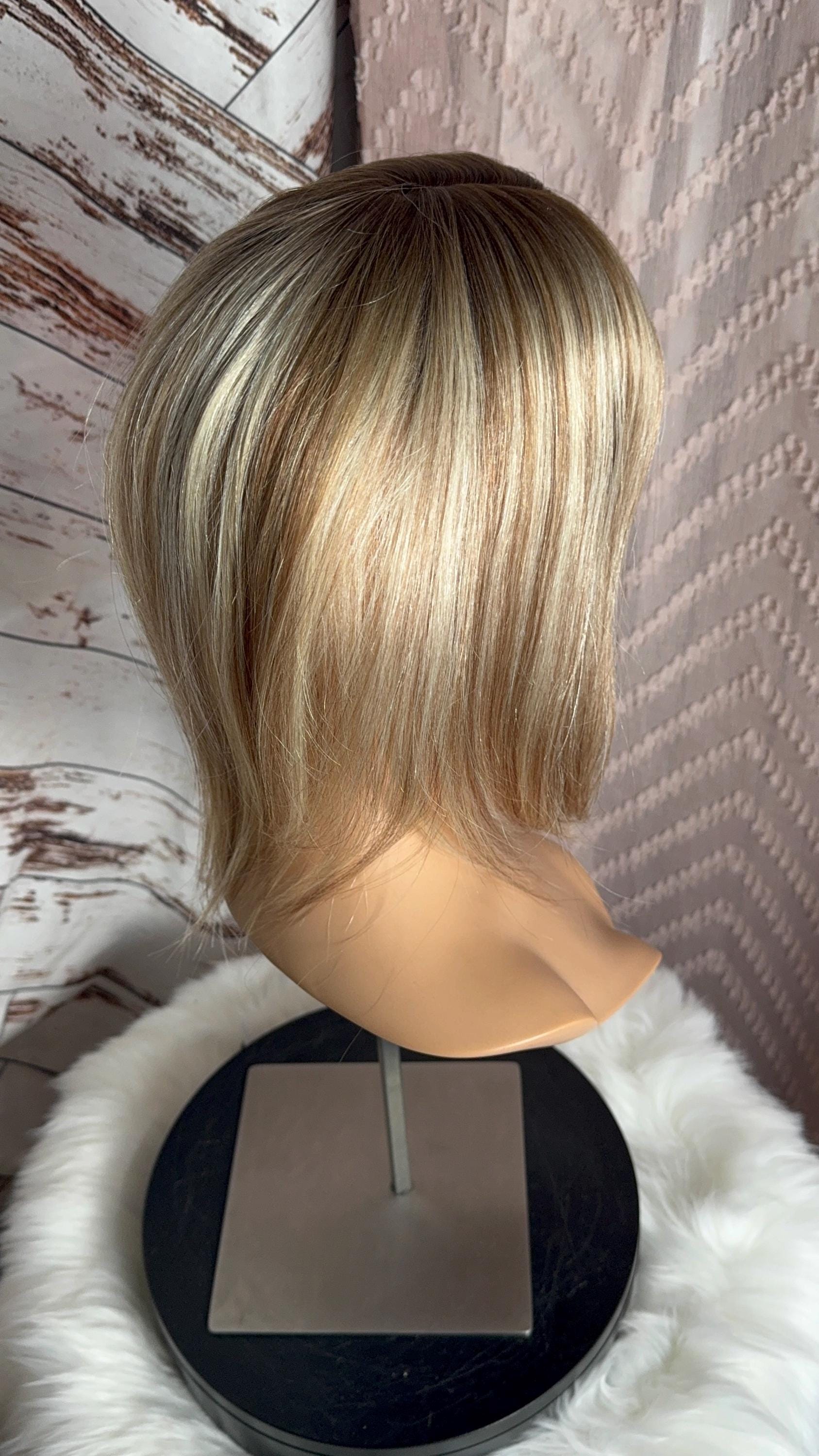 Lafayette Light Density Topper 100% Human Hair Topper Wig Warm Light Blonde Ombré Root Color Blend Silk Top The Wig Witch