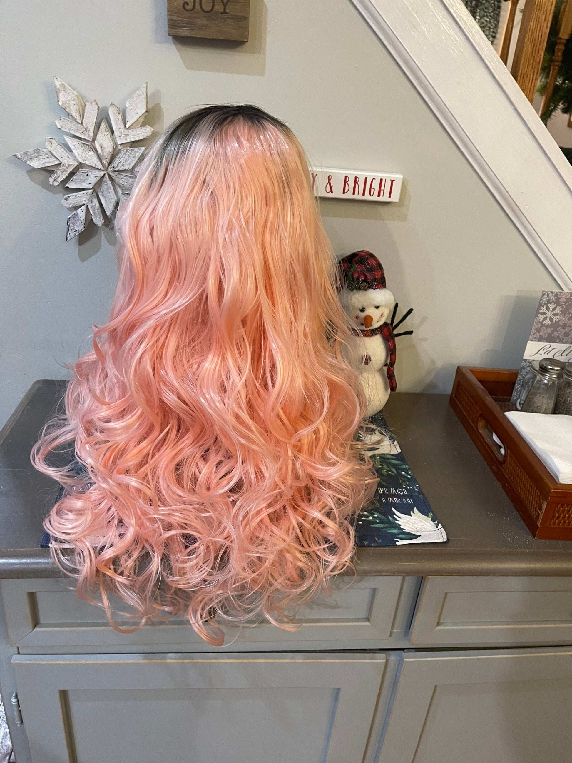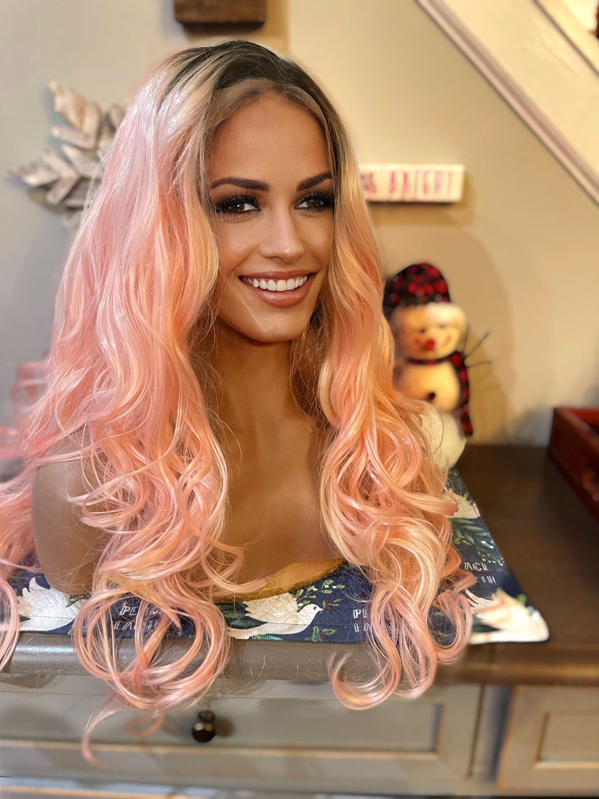 Leela Pink Wig Lace Front Rooted Balayage Ombre Wig Dark Roots Curly Wig Color Melt Wig Lace Front Wig Hand Tied Wig Festival Hair