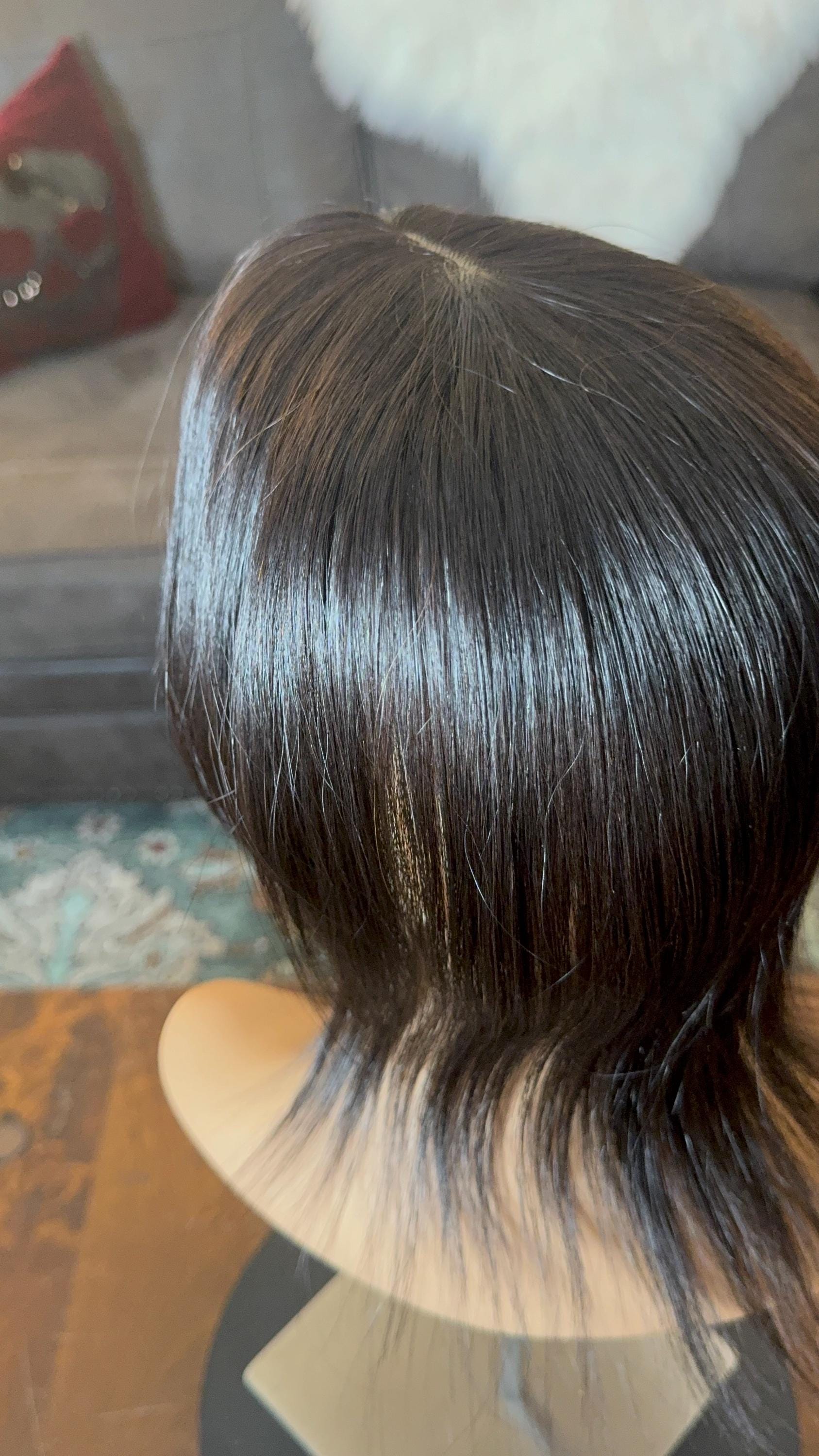Marilette Rich Blackish Brown Light Density Topper 100% Human Hair Topper Wig Natural Black Full Silk Top 14” The Wig Witch